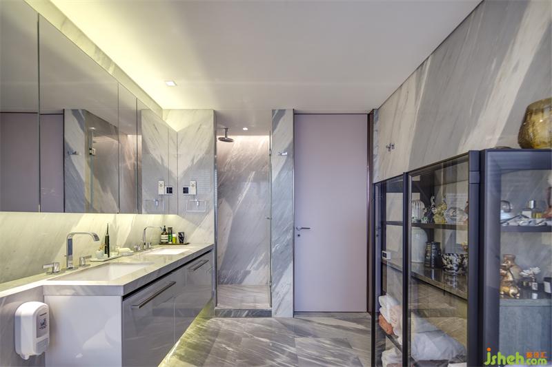 四面玻璃設(shè)計的儲物柜中內(nèi)容物一目了然,不僅用于存放生活用品,也陳列了業(yè)主收藏的裝飾品,在便捷生活用品收取的同時也希望能讓業(yè)主在早晚都能看到自己喜歡的藏品,在開啟和結(jié)束每一天的場所都能擁有更好的心情。