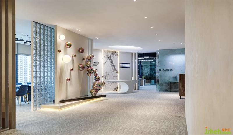 該公司主營(yíng)水上運(yùn)動(dòng)的推廣發(fā)展,所以,我們?cè)谠O(shè)計(jì)的時(shí)候,也會(huì)考慮到一些契合主題的元素。比如:我們將前臺(tái)打造成波浪形狀,增加空間的流線美感,讓整體更加的柔和 ,極具親和力。柔光似水的設(shè)計(jì)感,便由此及彼。