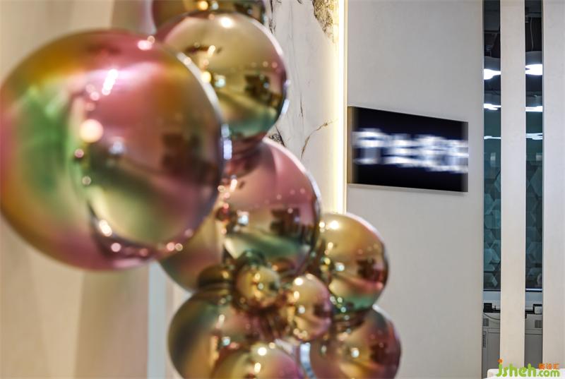 彩色的氣泡裝飾,分布?jí)ι?,讓空氣都充滿了甜甜的氣息。與燈球組合一起,有一種夢(mèng)幻般的童話感。