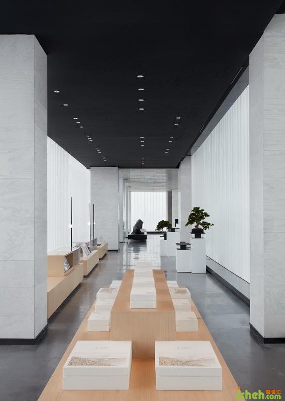 空間的大體色調最終確定為黑白。不過與司空見慣,以黑白顯“酷”的思路毫無沾染。而是意念上取“天地乾坤”,表現層面取“白紙濡墨”。因此在呈現的姿態(tài)上,并不作富視覺沖擊力的切割,不刺激眼球,而是將空間呈山水手卷般舒緩的逐次展開。從室內空間關系的層面,白是一個基礎,是規(guī)矩;黑是變化身形、恣意流動或瞬爾駐足,不逾矩的姿態(tài)。兩者所呈現的形式,于音樂的層面,構建出帶有即興撩弦,音能動人的意味。中國的雅樂,琴為大音,大音希聲。希聲者,正在有無之間。富象征意義的黑白通過大幅度玻璃與戶外的環(huán)境達成銜接,視覺引導心境,在“虛實”、“有無”間輕盈穿越。