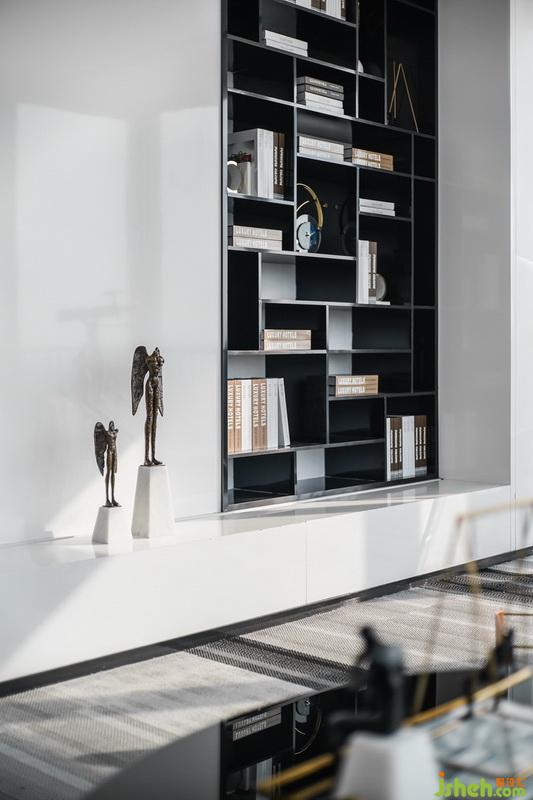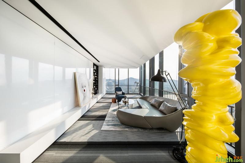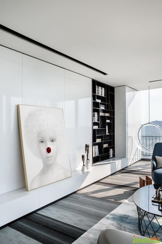 作為立意的基點(diǎn)“天光云影”并不能生硬的搬到室內(nèi)。同時(shí),把窗外景色盡可能引入到每一個(gè)辦公位又成為設(shè)計(jì)的課題。作為辦公空間的常態(tài),不到一定層級(jí),大抵都是終日向隅一隅。設(shè)計(jì)師深諳其苦。綜合環(huán)境和人文的需要,在呈現(xiàn)空間狀態(tài)的設(shè)計(jì)中,設(shè)計(jì)師不糾纏于瑣碎,而是大刀闊斧利用重新建構(gòu)的框架的基礎(chǔ)面形成的線條作展開。在色調(diào)上,設(shè)計(jì)師以白為基調(diào),以材質(zhì)賦予其形成微妙的異同狀態(tài),利用光的變化和重顏色的點(diǎn)線豐富空間形態(tài)。設(shè)計(jì)師在設(shè)計(jì)過程中,將空間當(dāng)作一個(gè)素而稍顯斑斕的觀景空間加以考慮,使用適量的綠植穿插其間,以與戶外天然作情態(tài)上的呼應(yīng)。在空間結(jié)構(gòu)重新整合之后,呈現(xiàn)出抬頭即眺遠(yuǎn),在使用者心理層面喚起“天光云影”的印象,調(diào)節(jié)使用人士在該空間的心理狀態(tài)。
