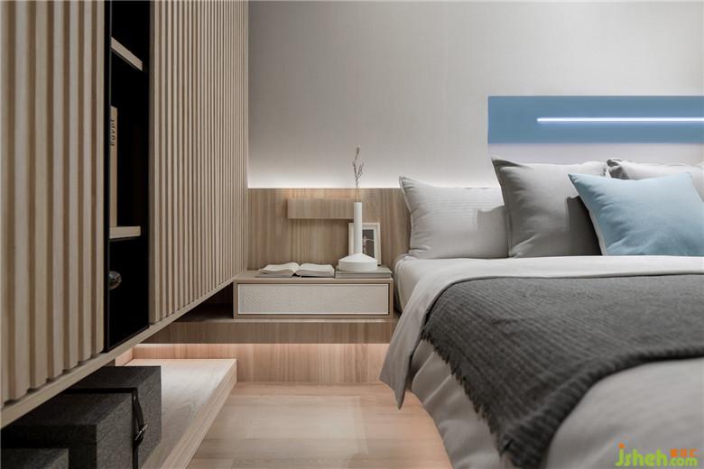 白色棉麻與不同質(zhì)感的灰度交織,并適時(shí)融入淡淡的灰藍(lán)絨面質(zhì)感,穿插少量黑色線條,材質(zhì)和色彩之間輕柔過(guò)渡。