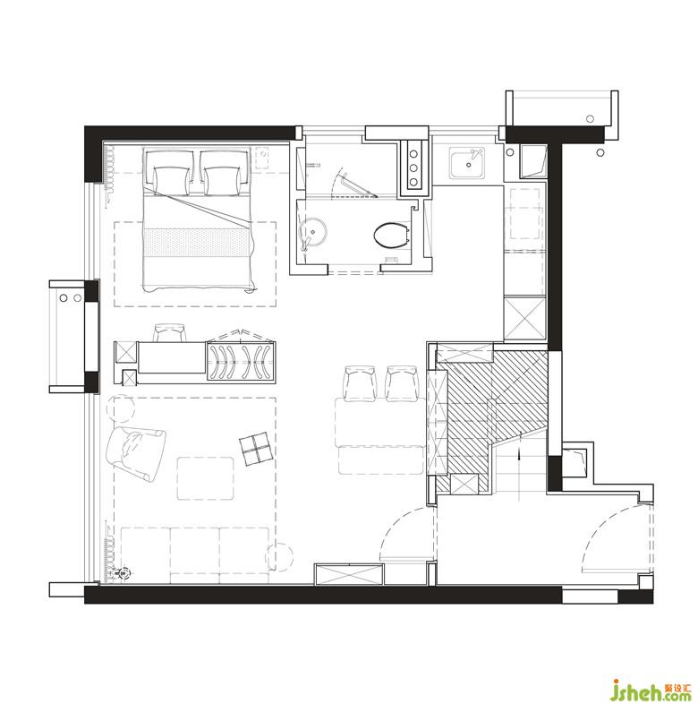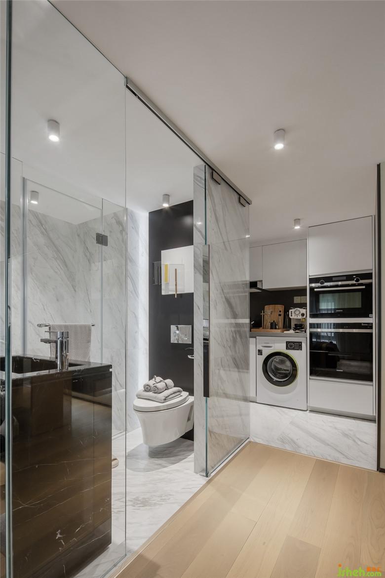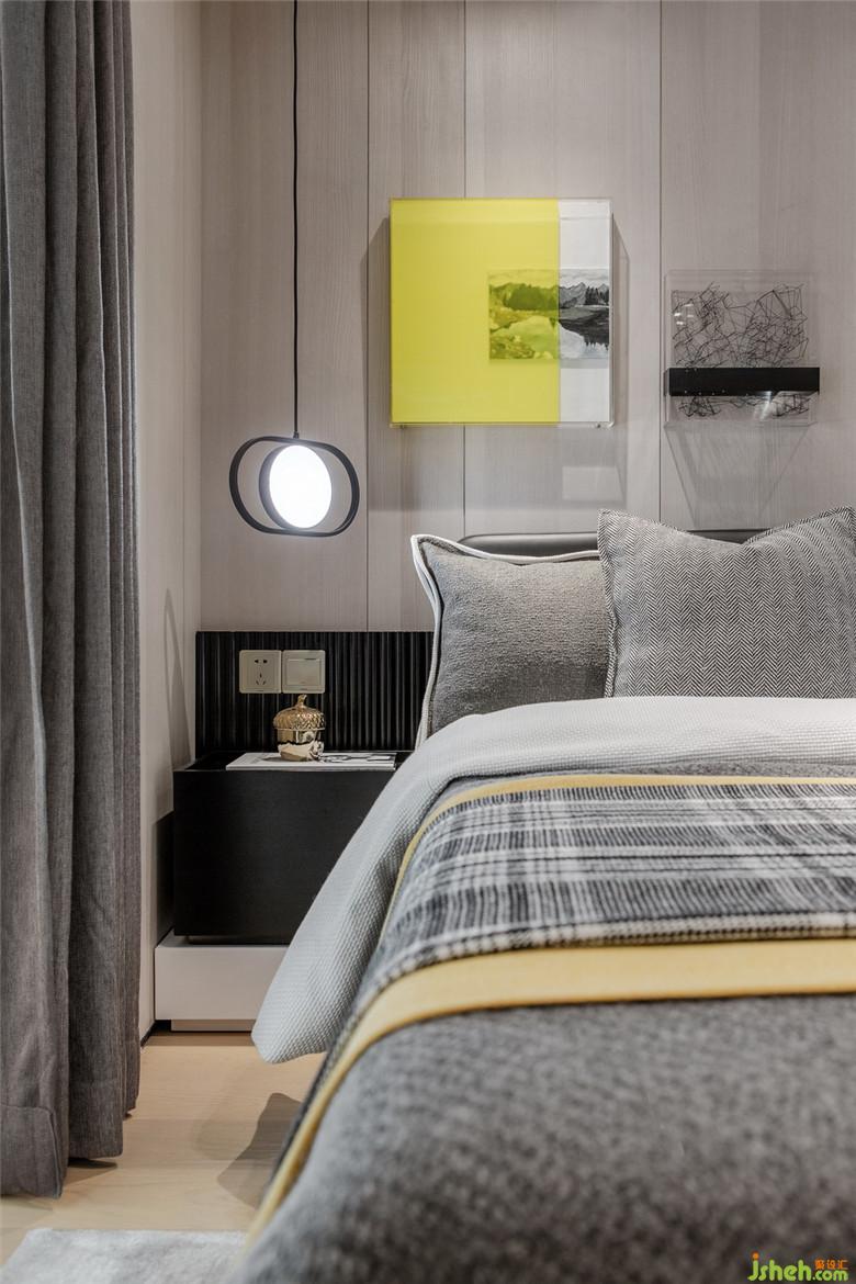 作為這三套樣板間中面積最大的一個,空間以深淺不一的灰與白作為基調(diào),線條明朗而直接。軟裝通過線條的改變來打破空間原有的穩(wěn)定,弧形圍合的茶幾,不規(guī)則的沙發(fā),與大面積圓形交錯的黑白地毯,碰撞出一種微妙的平衡感,斂去了方正空間的沉悶。