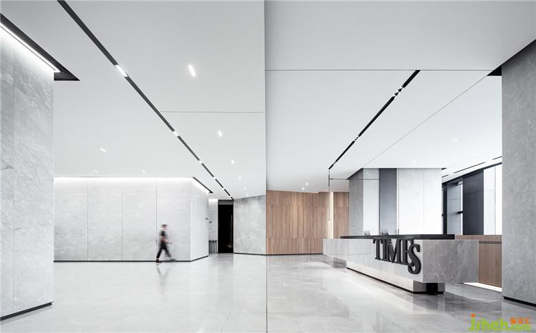 在五樓的商務(wù)大堂里,一塊下沉的獨(dú)立空間被隱藏在大堂前臺(tái)的背后,特殊位置使得這個(gè)場(chǎng)域可以將等待的到訪人員完美的“躲”在里面,保證接待區(qū)域的整齊有序。在整個(gè)商務(wù)空間體系中,它就像緊湊的動(dòng)線上的一個(gè)緩沖區(qū),在內(nèi)與外之間提供一個(gè)可長(zhǎng)時(shí)間停駐的人性化區(qū)域。大量木質(zhì)元素的應(yīng)用讓這里顯得更加溫和柔軟,營(yíng)造出舒緩的歇息與交談氛圍,這一切也因?yàn)榭臻g的下沉被極好地隱藏在大堂的“高冷”調(diào)性之中。