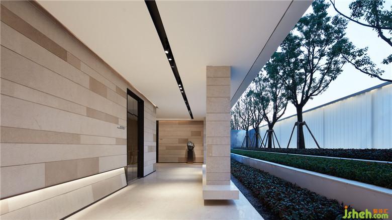 內(nèi)退的玻璃隔斷在打開的空間里劃出了前廳核心的接待空間,通透的質(zhì)感保持了內(nèi)外視野的連接,讓空間隔而不絕。玻璃隔斷的內(nèi)退為景觀與內(nèi)部空間留下融合的余地,同時(shí)建立內(nèi)外兩條流動(dòng)動(dòng)線,免去過多紛擾,避免“過滿則溢”。在前廳內(nèi),設(shè)計(jì)師摒棄了一切多余的結(jié)構(gòu),保持空間整體的通透與輕盈,前臺(tái)、沙盤、洽談區(qū)依序安置,三兩藝術(shù)品點(diǎn)綴層次,對(duì)建筑的初心保持尊重,以少,見多。