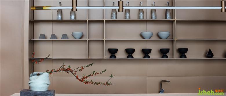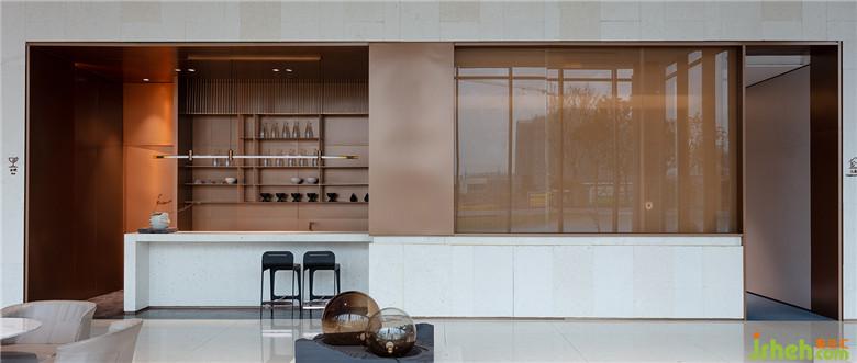 桃花源既是中國傳統(tǒng)文人對理想的追求,也是中國當下語境里的烏托邦暢想;不僅是個人的愿景,更是大視角下的社會圖景,閃耀著東方色彩的人文之光,而空間設計必須將之變成立體的意象,讓人可以走進去的真實場景。共生形態(tài)選擇古典的朱砂紅、墨黑與金色,點綴端莊穩(wěn)重的琉璃藍,和空間中使用的石材、黃銅與木材堆疊穿斫,在悄無息中拉長了時空的距離,具象化空間的神秘虛幻色彩。錯落別開的屏風上濃重的一筆墨跡,凸顯灑脫東方藝術視像。