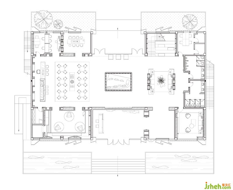 在銷售任務(wù)結(jié)束后,銷售中心將還原為小區(qū)的門樓、廳堂和物業(yè)的鄰里中心。銷售中心講究格調(diào),用以安放受眾對未來生活的期許,而還原后將成為受眾的日常生活場所,這豈非也是一個從觀想世界到世俗世界的轉(zhuǎn)變過程?為避免大拆大建,減少二次拆改,設(shè)計(jì)師對比還原前后的空間,通過詳細(xì)拆解動線規(guī)劃,將銷售空間與未來生活空間作出最大限度的重疊共生,保證空間利用率的同時,將浪費(fèi)與消耗減至最小。售樓處設(shè)計(jì)
