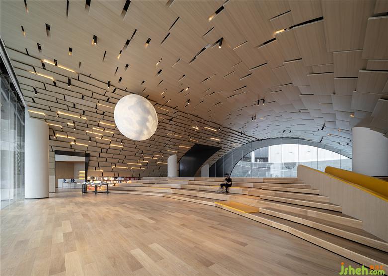 設(shè)計(jì)師認(rèn)為,將時(shí)間與記憶帶入室內(nèi)空間之中,也讓空間有了垂直意義的聯(lián)系。售樓處設(shè)計(jì)空間至下而上分別帶入“童年記憶”、“兒時(shí)憧憬”和“美夢成真”的三個(gè)主題,分別對(duì)仗“聽濤”、“望山”、“觀星”三種空間體驗(yàn),因此,也就有了“枕草望月螢火飛,遙看星河嘆流年”的空間感知和詩意表達(dá)。建筑立面的解放讓室內(nèi)外空間相互滲透與融合,自然色調(diào)和特性的材料選擇更充分的表達(dá)出場域特征和居住精神,讓人在瞬息萬變的時(shí)空之中,體驗(yàn)生活和自然之美。