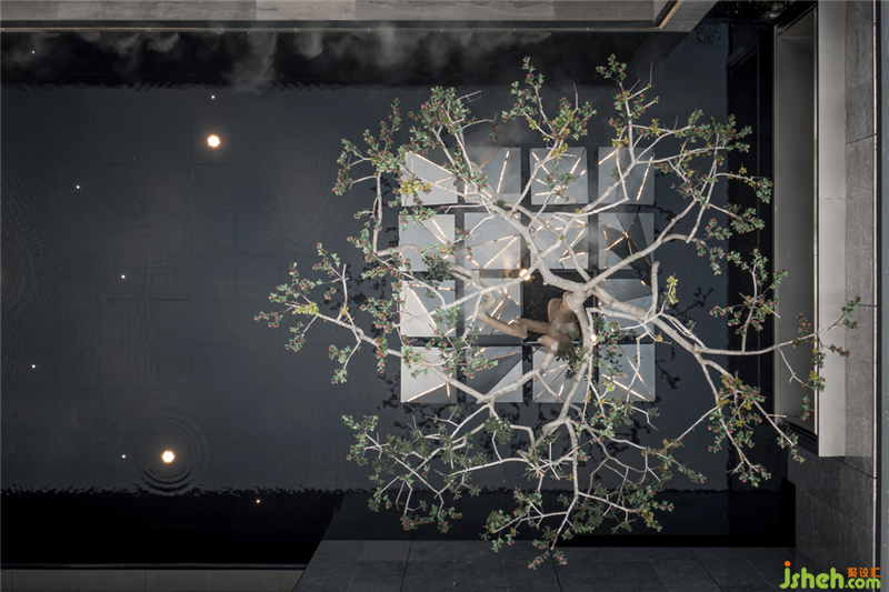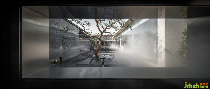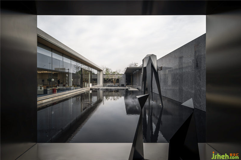 櫥窗式“框景”,一方面破除里外的分界,同時建立起里與外的銜接;另一方面所“框”之景暗合曲水流觴的敘事,觸發(fā)觀者對空間的思考和探索的興趣。園林通過玻璃幕墻滲透到建筑的內(nèi)部,建筑懷著開放的姿態(tài)將自身向景觀敞開,彼此互為映襯,相得益彰。