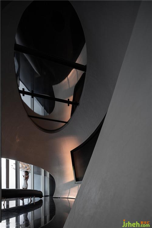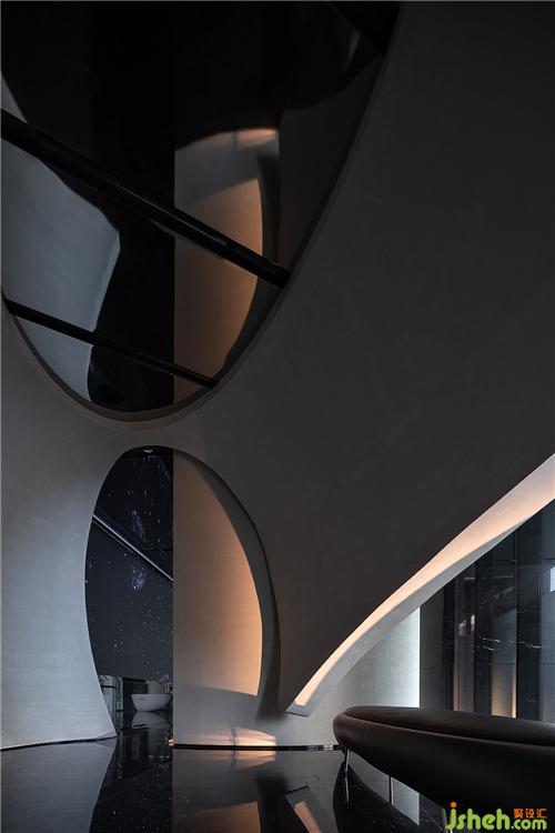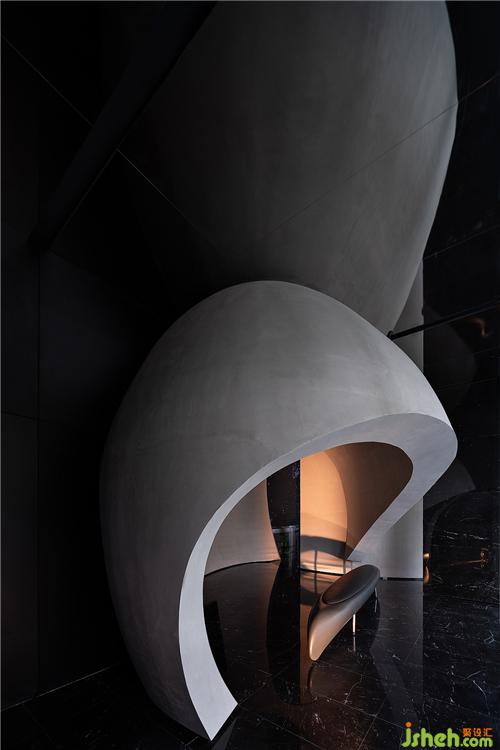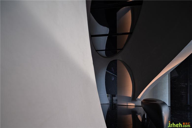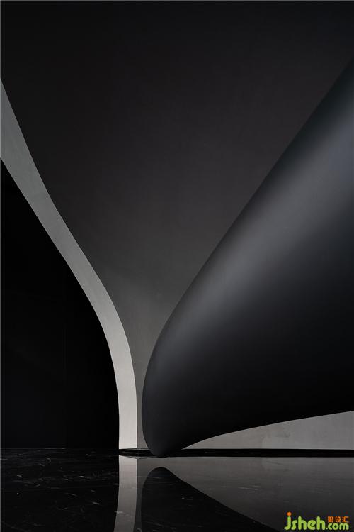 展示區(qū)設(shè)計從內(nèi)部開始,弧線優(yōu)雅的殼體漂浮在深色空間中,敘述著微妙的關(guān)系。