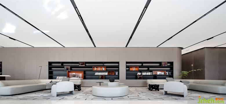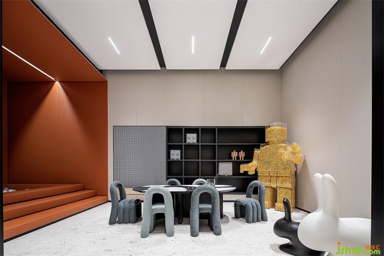 廣州銷售中心設(shè)計洽談區(qū)域整個平面布局通透舒展,陽光透過玻璃在明暗之間和閱讀區(qū)域共同演繹光明和陰翳的曖昧關(guān)系。兒童區(qū)前的小劇場將空間功能性發(fā)揮出來,在人文關(guān)照方面給予多重演繹。