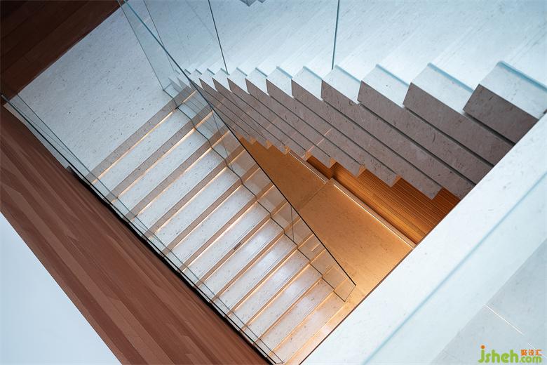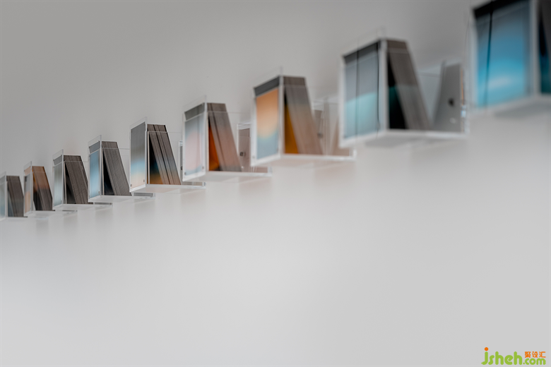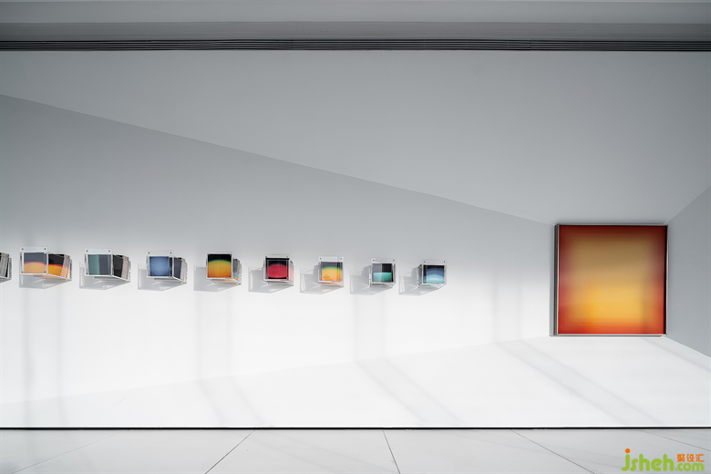 其本身的畫(huà)廊功能在真實(shí)和想象中流動(dòng),反而模糊了畫(huà)里畫(huà)外的界限——從內(nèi)向外盡覽城市繁蕪;廣州銷(xiāo)售中心設(shè)計(jì)從外向內(nèi)成為框景的櫥窗展現(xiàn)在沿街面,讓整個(gè)建筑通透又神秘。這條玻璃長(zhǎng)廊同時(shí)也是進(jìn)入樣板間的必經(jīng)之路,為游走于生活與藝術(shù)的體驗(yàn)賦予了一層哲學(xué)寓意。