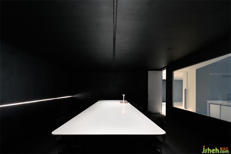 黑色中的大會議室,較之于白色或敞亮的空間,能讓思考不受常規(guī)性的暗示與束縛,更為活躍。在純凈的黑之中,頭腦的風(fēng)暴似乎總是來得更為強(qiáng)烈些。