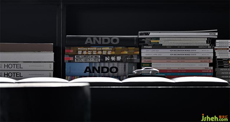 A grey sliding door serves as the boundary, with which the office area retreats into a relatively regular trapezoidal space, thereby dissolving the triangular structure’s interfering effect on spatial perception.