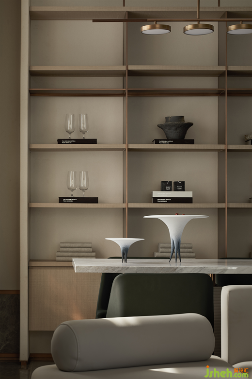 由公共區(qū)域至茶室的地面紋理,在海浪般的感性與狂狷之中由動至靜,仿佛素淡情境下的浮世繪,加深空間張力的沖突性,彌漫出一種雅俗皆融的生命力。