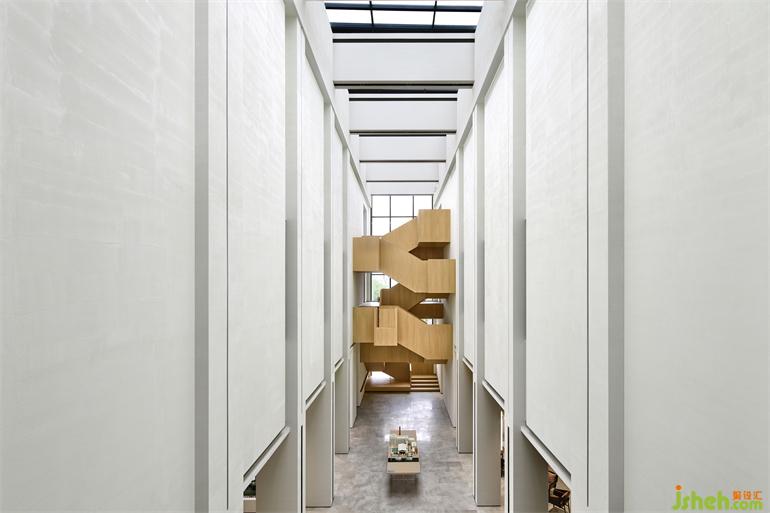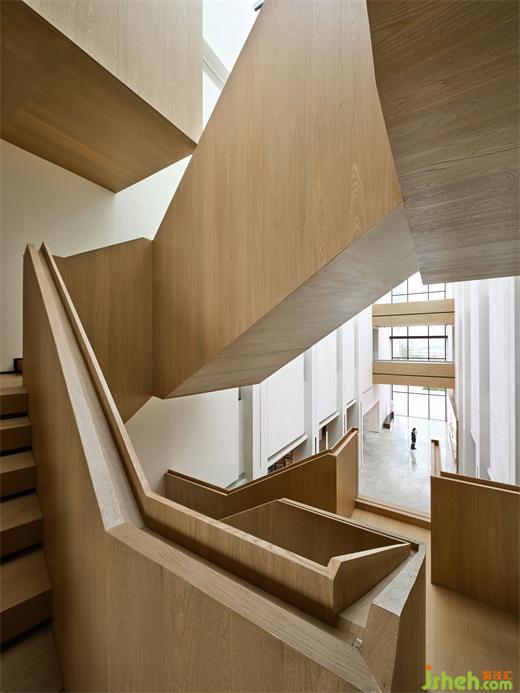 將垂直交通作為漫游的路徑, 大廳中的樓梯猶如一個(gè)具有象征意義的結(jié)構(gòu),向老糖廠的樓梯致敬。