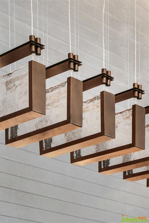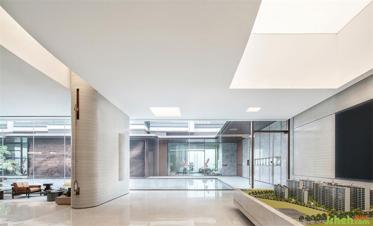 成都保利錦城和頌體驗中心裝修設計師巧妙運用引景與借景的手法,使得有限的空間營構出無限的趣味。半凸于立面的空間被改造成品茗水榭,猶如水面上的亭子,放寬建筑的尺度,提供視野延伸的契機。臨水品茗,正對池中天地;繞池而行,水榭風光成為立面點景;一引一借,互相交響成為彼此的神來之筆。
