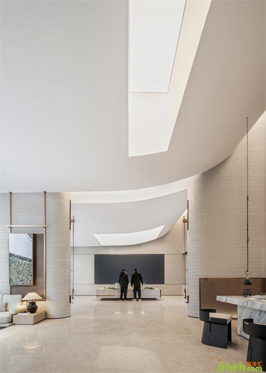 一碗熱騰騰的蓋碗茶,承載著成都人的處世哲學。蓋為天,托為地,碗為人,筑起生活的城堡,暗含天地人和之意。自蓋碗形態(tài)演繹出空間內向型環(huán)繞式布局,成都保利錦城和頌體驗中心裝修設計保證主動線體驗的連貫流暢和不同空間的獨立性,讓榫卯結構、皮影裝置、花藝作品等元素,都能恰如其分地融合在空間之中,共同組成川蜀生活的美好范式。
