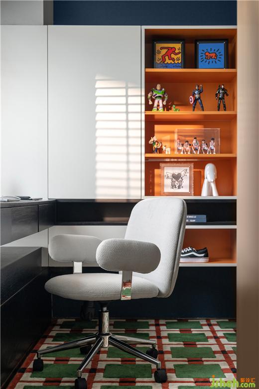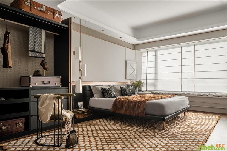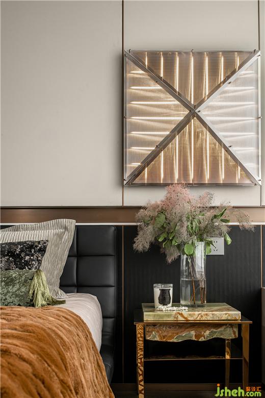 主臥的主要基調(diào),來源于公共空間中沉穩(wěn)低調(diào)的皮革棕色系,越秀樣板間設(shè)計(jì)通過少量黑色、金屬色、木色的調(diào)和,呈現(xiàn)出溫和優(yōu)雅的精英氣息,并與雜糅進(jìn)空間的松弛與詼諧情緒一起,完成對(duì)于個(gè)體審美的充分表達(dá)。