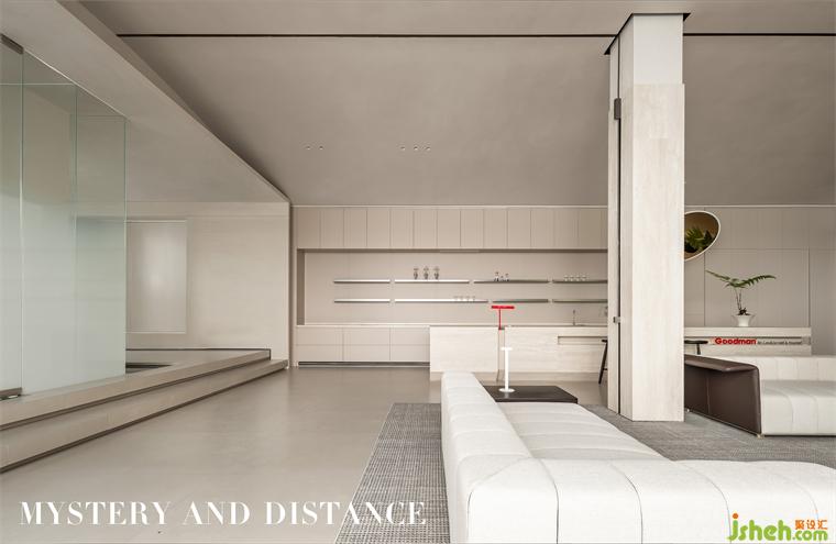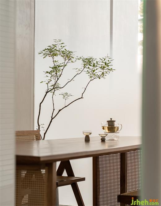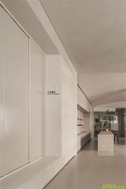 茶室以漸變玻璃作為隔斷,保留空間私密性和神秘感;展廳設(shè)計(jì)室內(nèi)香格里拉窗簾的采用,透光而不透景,屏蔽外界喧囂,使室內(nèi)與室外保持一定的距離感。