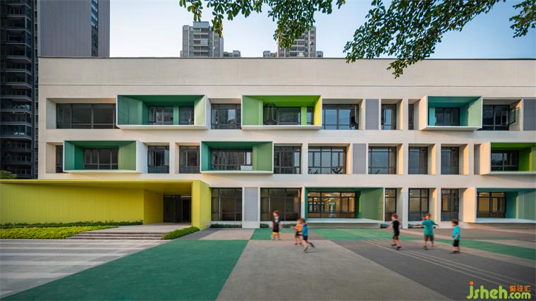 本案幼兒園設(shè)計(jì)位于廣東佛山時(shí)代創(chuàng)客小鎮(zhèn),是一個(gè)針對(duì)原有建筑外立面而展開(kāi)的幼兒園外觀改造項(xiàng)目。