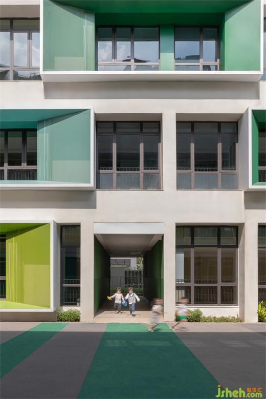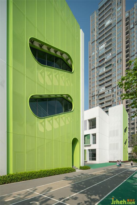 原建筑造型規(guī)整,用材單一,缺乏豐富的色彩表達(dá)與個(gè)性化需求。是以,幼兒園設(shè)計(jì)團(tuán)隊(duì)提出以“搖籃”為設(shè)計(jì)理念,重新梳理建筑、園林、室內(nèi)的關(guān)系,在整體改造不破壞原結(jié)構(gòu)的基礎(chǔ)上,賦予建筑個(gè)性化的面貌,恢復(fù)幼兒園應(yīng)有的童真色彩。