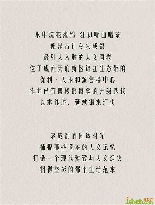 位于成都天府新區(qū)錦江生態(tài)帶的保利·天府和頌售樓中心,作為已有售樓部概念的升級(jí)迭代,成都營(yíng)銷(xiāo)中心設(shè)計(jì)以水作序,延續(xù)錦水江邊老成都的閑適時(shí)光,捕捉那些遺落的人文記憶,打造一個(gè)現(xiàn)代雅致與人文煙火相得益彰的都市生活范本。