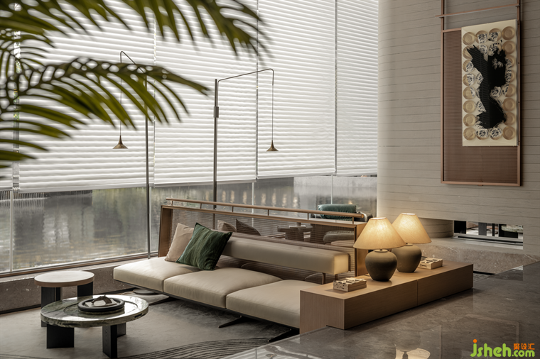 水紋形態(tài)壁燈、錦鯉裝置、陶瓷水墨藝術(shù)、窯瓷茶器等細(xì)節(jié)與藝術(shù)陳列,成都營銷中心設(shè)計將傳統(tǒng)文化與現(xiàn)代生活方式相融合,從不同的維度上詮釋著錦水對日常與藝術(shù)的滋養(yǎng),喚醒城市歷史文脈,在地域人文景觀的光譜里,為項(xiàng)目場景注入城市的靈魂。