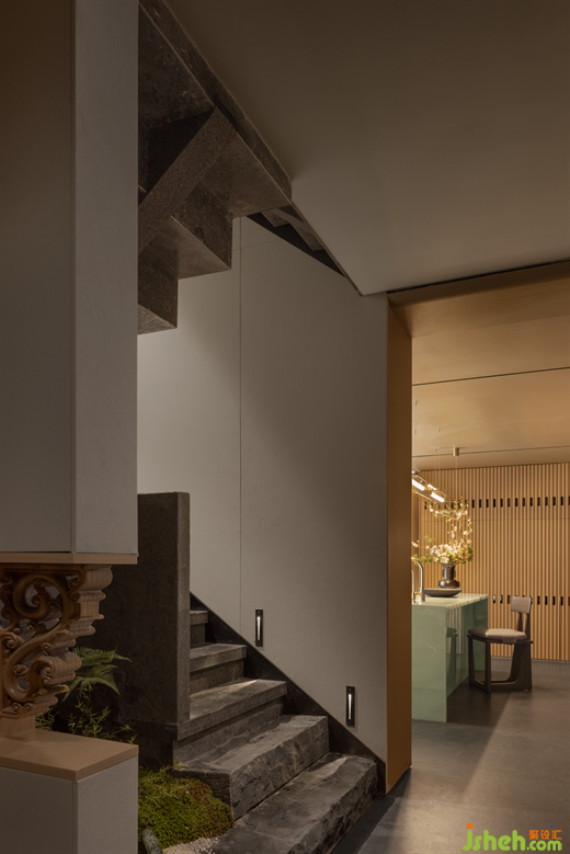 動線轉(zhuǎn)而向上,完善從精神性向?qū)嵱眯赞D(zhuǎn)變的歸家之禮序。