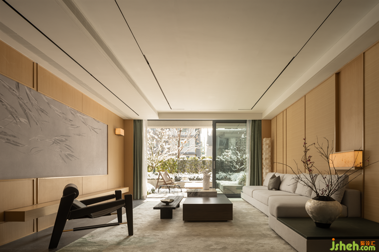 冬日隔窗觀雪,夏夜推門納涼。戶外庭院的自然風(fēng)光,通過落地玻璃引入室內(nèi),可觀,可賞,可踏入,可成為日常生活的延伸。
