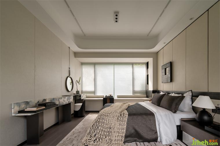 主臥的氣質(zhì)謙遜而優(yōu)雅,當(dāng)代的極簡線條里,隱隱透露出幾許復(fù)古的藝術(shù)趣味。木質(zhì)調(diào)的芬芳,以另一種不易察覺的方式,安撫著駁雜的心緒。尤其在結(jié)束一日的疲勞工作后,一種沁入心脾的復(fù)蘇感在這里得到回應(yīng)。