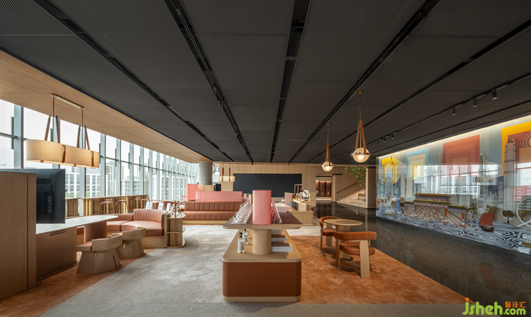 在首層至三層的空間當(dāng)中,會(huì)所設(shè)計(jì)公共空間的配置鼓勵(lì)開放性和靈活性,促進(jìn)社群自然交流和互動(dòng)。通過(guò)設(shè)計(jì)靈活的共享工作空間和多功能設(shè)施,支持不同背景的產(chǎn)業(yè)體和個(gè)人之間的協(xié)作與交流。