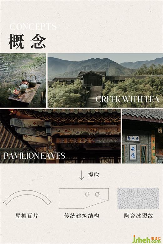 設計核心的特征在于表意,通過承載歷史經(jīng)驗的構造方式與構件,軟硬裝一體介入,呈現(xiàn)出頗有意味的生活切片。整個空間包覆于木質拱頂之下,壁燈、茶鋪瓦片與木質相互映襯。成都的人間煙火,是人們最為熟悉和依戀的城市元素,設計以茶館文化為切入點,試圖喚起人們記憶里關于茶的鄉(xiāng)愁,而非高高在上的呈現(xiàn)。