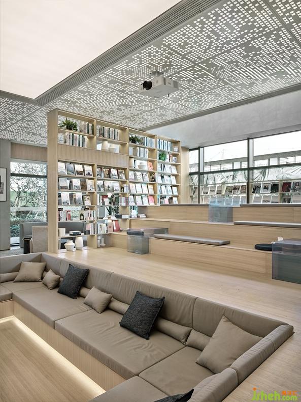 The children's entertainment zone is beside the property model display area, where kids can learn things through lively and delightful activities. The arc-shaped bookshelf, furniture from the Italian furniture brand ME TOO, combined with Legos, make the space interesting and visually attracting.
