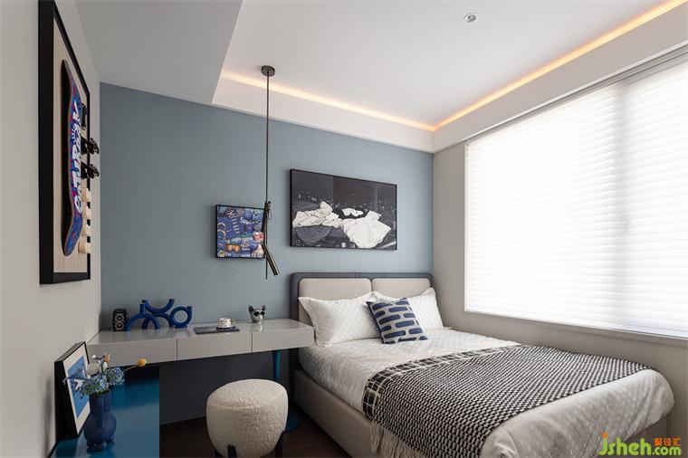 兒童房則以更為明快和活潑的色彩勾勒,充滿活力的藍(lán)色調(diào)和溫暖的木紋裝飾,激發(fā)了空間的生機(jī)和孩子的想象力。