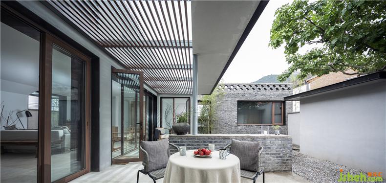 為保障戶外活動無懼陰雨和暴曬,建筑在南向設(shè)置了玻璃雨棚,并以木格柵形成光線的過濾。室內(nèi)設(shè)計師同時,灰空間的留存是對傳統(tǒng)建筑形制“風(fēng)雨連廊”的追憶,兼具功能和情感價值。