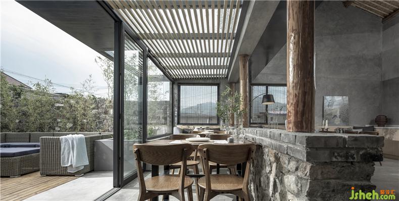 在張家莊村,全村沒有一家飯店,想要用餐只能到3公里以外的另一個(gè)村?!靶【起^”是基于餐飲需求而誕生的經(jīng)營形態(tài)。同樣尊重場(chǎng)地文脈肌理,同樣是二分半宅基地的面積,室內(nèi)設(shè)計(jì)師同樣是舊農(nóng)宅改造,“小酒館”比“紅果樹”更具公共屬性。