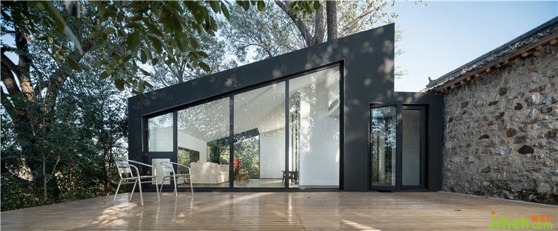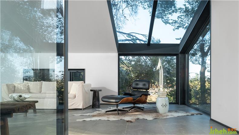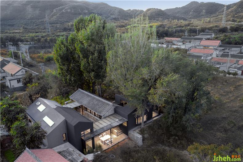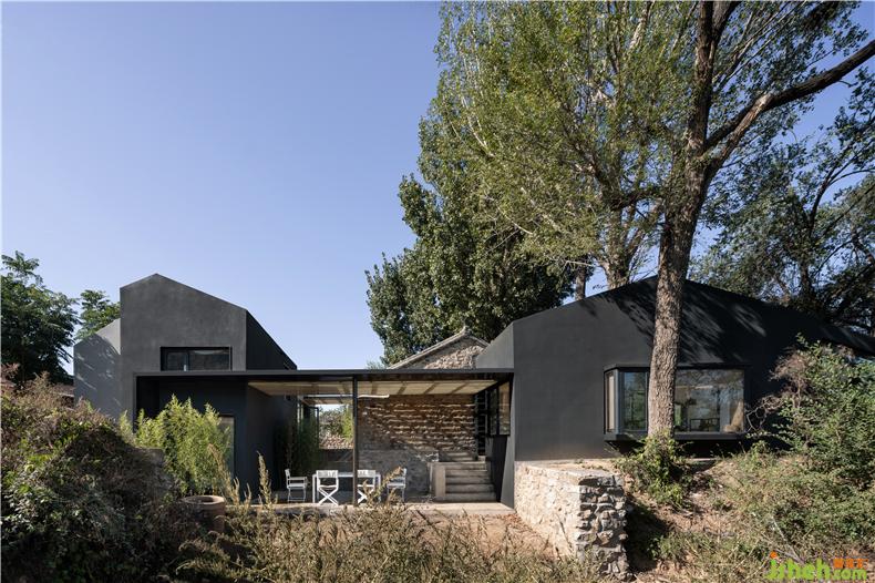 “樹下院”是新項目的名字——林立于一片白楊樹和核桃樹之間,室內(nèi)設(shè)計師東側(cè)毗鄰一大片菜地,這種原生態(tài)的場地優(yōu)勢是項目的命名淵源,也是設(shè)計的核心依托點。設(shè)計師希望創(chuàng)造一個豁然開朗的院子,把房屋周圍的樹木、山巒、陽光以及使用者的各種活動都容納其間。