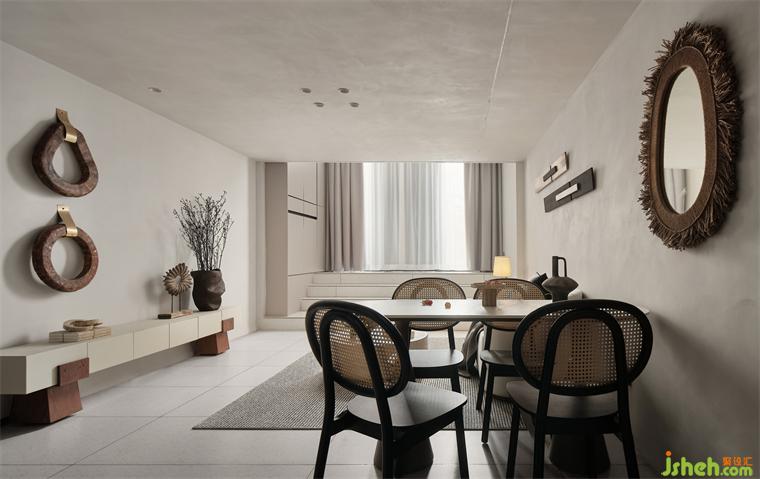 與家人享受一餐飯的相聚,家的溫度也在這種親近中慢慢升溫.在就餐場景的營造中,民宿裝修設(shè)計(jì)通過冷暖材質(zhì)的對(duì)撞,奇妙的反差感為就餐增加了豐富的趣味性.小體量空間中的功能復(fù)合,通過使用場景交叉來豐富體驗(yàn)感受.