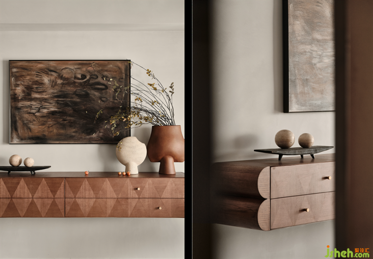在木頭、地毯和棉麻的協(xié)奏曲中,富有韻律感的幾何形體,映照了人們對于美學(xué)思考中最本質(zhì)的秩序需求.每一個醒來的清晨,一室盈盈間,生活的美好底色被喚醒.