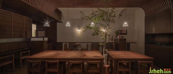 吊燈上金屬的黃銅色,極為克制的回應(yīng)當(dāng)下的商業(yè)氛圍。糖水店裝修繁體手寫(xiě)木牌菜單,木桌椅的觸感和肌理,組成了一種普通而親切的日常,和置于都市背景下的陌生。