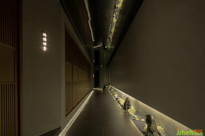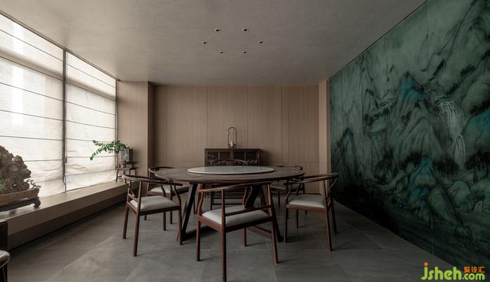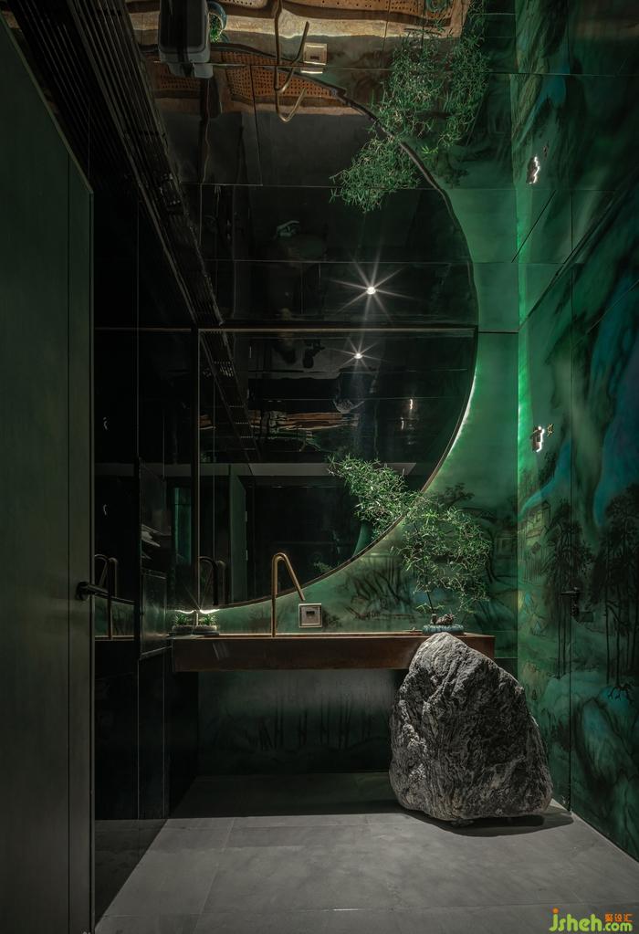 洗手間有限的空間內(nèi),茶院設(shè)計(jì)師利用光和影、虛與實(shí)結(jié)合的空間,巧妙加深空間的縱深視覺感,將四分之一圓變成一個完整的圓。