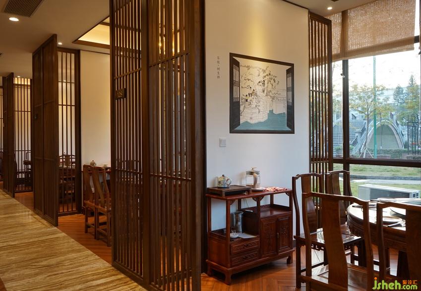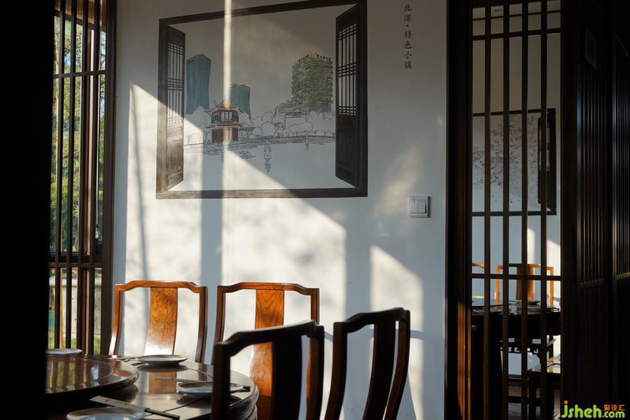 室內(nèi)設(shè)計(jì)師設(shè)計(jì)之初,設(shè)計(jì)師為本私房菜館的設(shè)計(jì)營(yíng)造了一個(gè)背景:故事的主人公是一位成功的從事飲食的食家,事業(yè)有成,從國(guó)外重歸故里一一一順德陳村,其傳承了順德飲食文化的精髓,又屢有創(chuàng)新。對(duì)順德美食有很高的造詣。同時(shí),他也是一位有非常高的人文素養(yǎng)及情懷的生活家,有很高的生活品味,對(duì)傳統(tǒng)文化、鄉(xiāng)土人文有很深的理解與感情。因其身歷中西文化的差異,所以能理解中西文化的交融,融匯古今,并以發(fā)展與傳承的眼光看待傳統(tǒng)與當(dāng)代,這就是本設(shè)計(jì)的初衷與背景。設(shè)計(jì)師強(qiáng)調(diào)將周圍的綠意景觀和迷人光影引入室內(nèi),并與當(dāng)代表達(dá)的傳統(tǒng)人文元素融合,讓遠(yuǎn)道而來(lái)的食客從自然的光影、綠意、傳統(tǒng)、鄉(xiāng)土的當(dāng)代元素所營(yíng)造的環(huán)境氛圍當(dāng)中,品嘗順德美食的迷人魅力。