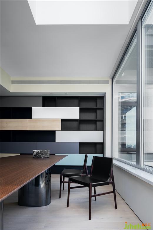 步入茶室,豪宅設(shè)計師刻意以現(xiàn)代主義去改變傳統(tǒng)茶室一貫的含蓄與靜默,以大面積陣列的落地開窗尺度,突破傳統(tǒng)窗景幽微的采光樣貌;以素靜的白色墻面為底,修長簡潔的茶席像慢慢展開的一幅長卷,古老的美學(xué)在追求純粹的現(xiàn)代設(shè)計中卸下了包袱。