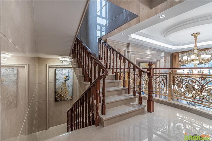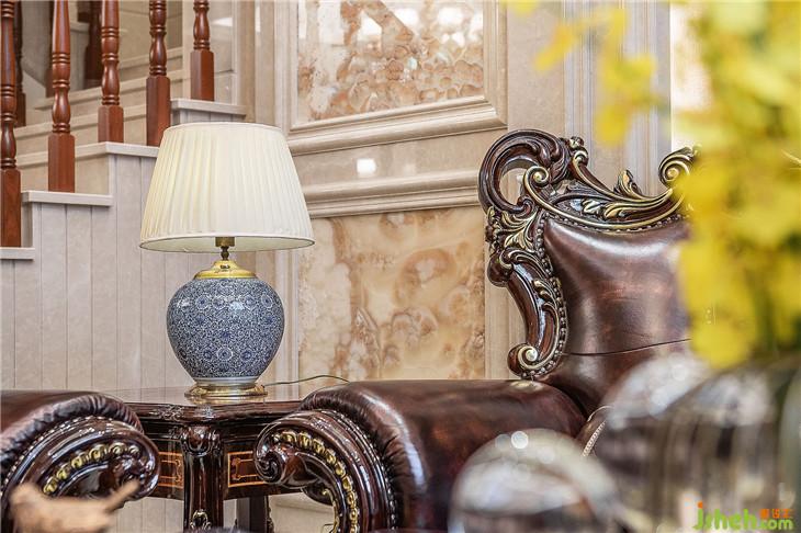 木質(zhì)樓梯,扶搖直上,水晶吊燈如瀑布,流曳一地春光。各種不同材質(zhì)的家具飾品,墻面上、展柜里,各自驕傲著。也各自映照大宅的美。