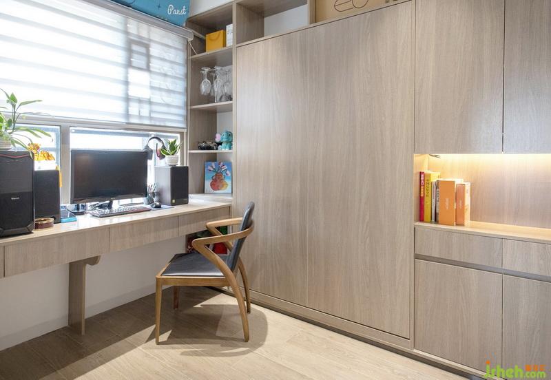 戶主夫婦都喜愛親自下廚,設(shè)計(jì)以上白下木為廚柜主調(diào),配上透明玻璃廚房門,增加內(nèi)外通透感。