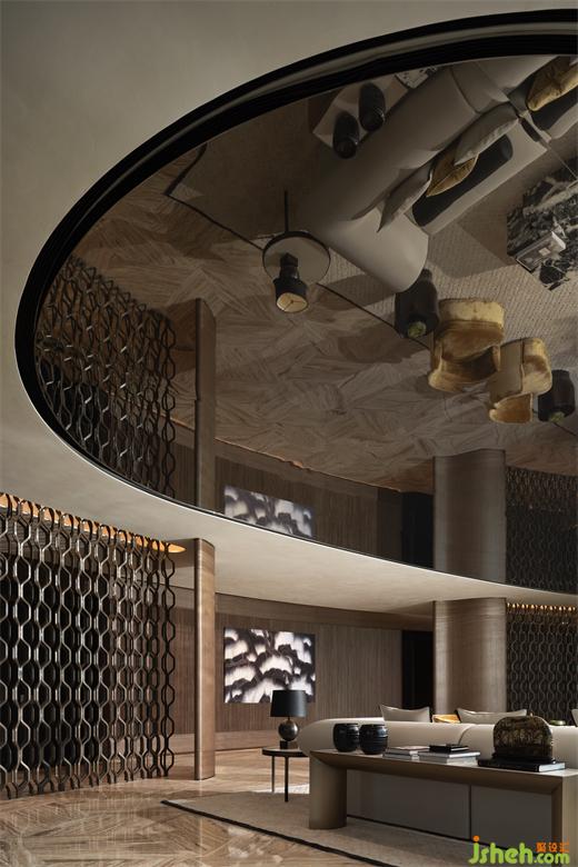 在郭子看來,“Parlor”介于公共與私密空間的交界處,或者游離于二者之外,是屬于主人的“自定義空間”,它是生活的轉場,社交的主場,在這里,或是品茗、嘗酒,或是洽談、雪茄,樣板房設計亦可容納中小型的會議、發(fā)布會,它容納著社交所需的不同功能,更讓對藝術的審美發(fā)生于其間。