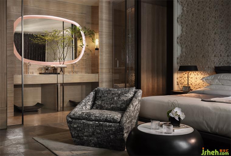 大面積的皮質(zhì)編織床背,回應(yīng)了前序空間的設(shè)計(jì)語(yǔ)言,樣板房設(shè)計(jì)只是以更為柔軟的方式,安放在了更為柔軟的空間。