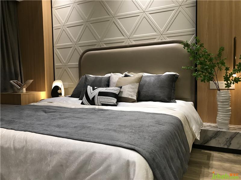 主臥依舊延續(xù)大地色系,走進(jìn)樣板房設(shè)計(jì)房間,溫柔的燈光,大地色系的墻面與地板,讓人瞬間仿佛走進(jìn)秋日。棉麻質(zhì)地的床上用品,簡單大氣,讓房間整體的色調(diào)更加溫馨與舒適。