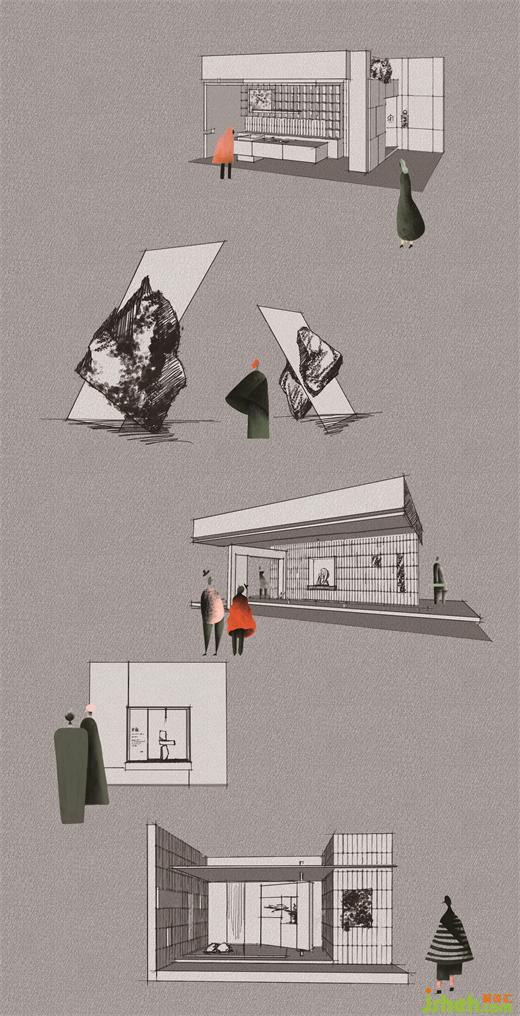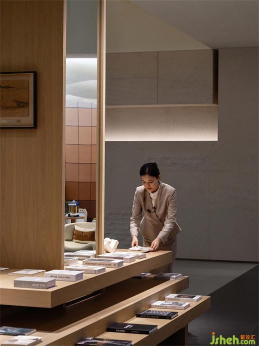 在邊界處外露部分建筑梁體,保留梁的原始質(zhì)感和體塊感,增強(qiáng)空間的藝術(shù)性。參差錯(cuò)落的板塊構(gòu)成了人文藝術(shù)與水墨書(shū)卷的展示區(qū),銷(xiāo)售中心設(shè)計(jì)將傳承的國(guó)學(xué)與現(xiàn)代藝術(shù)相結(jié)合,在洽談區(qū)演繹出一種別樣的文化韻味。